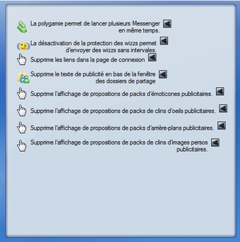 En plus de vous autoriser la suppression des publicités dans la liste de contact et dans la fenêtre de conversation, MessLive Patch rend possible l'élimination de la plupart des boutons dont vous ne vous servez pas ("Bloquer" ou "Liste des jeux" par exemple).
